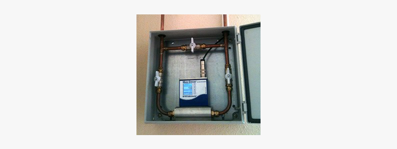 Mise en place simplifiée par une intégration « Prêt à Poser ». Le compteur de débit massique avec son système de bypass est intégré en usine dans une armoire IP65 . Le raccordement se fait directement sur le réseau à contrôler. Seule une alimentation 230Vac est nécessaire.